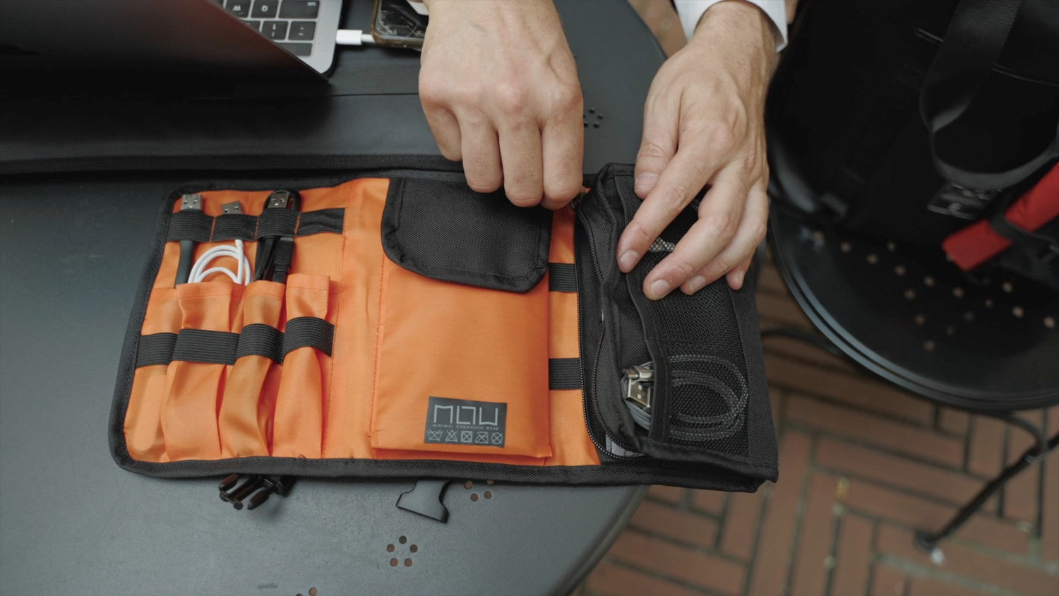 From your coffee break to your exotic destinations. With over 10 cable holders, 2 mesh pockets, 1 flap kiss pocket and one full YKK zipper it is the perfect tool for your creative work and digital nomadism.