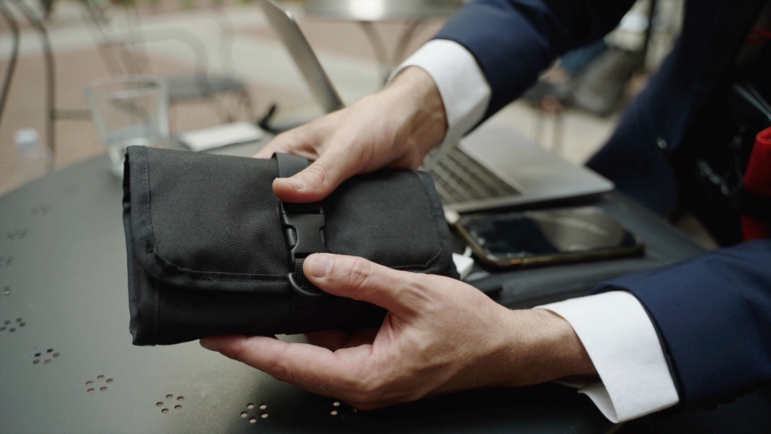 Unrolled for the full width, roll up for a secure and compact digital nomadism