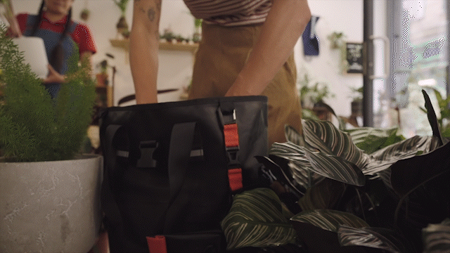 The roll top 210D dual coating lining remains hidden for your 20L compact urban commute. When more packing room is needed it extends to up to 40L in a blink.