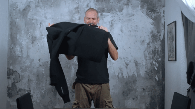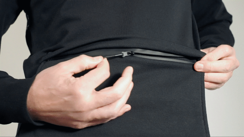 Break free from decades of stagnation/lack of innovation and discover the newest evolution of the classic Kangaroo-pouch hoodie - functionality in the most meticulously crafted two-way pocket ever crafted.