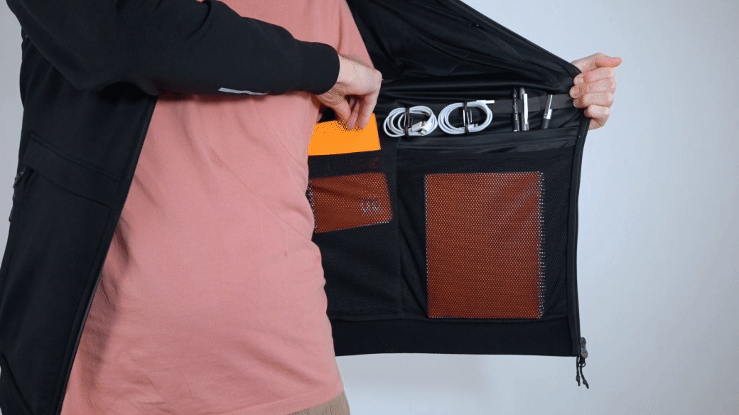The Swiss make watches, Italians design clothes, secure waterproof pocket, earbuds mesh pocket, tech waterproof pocket.