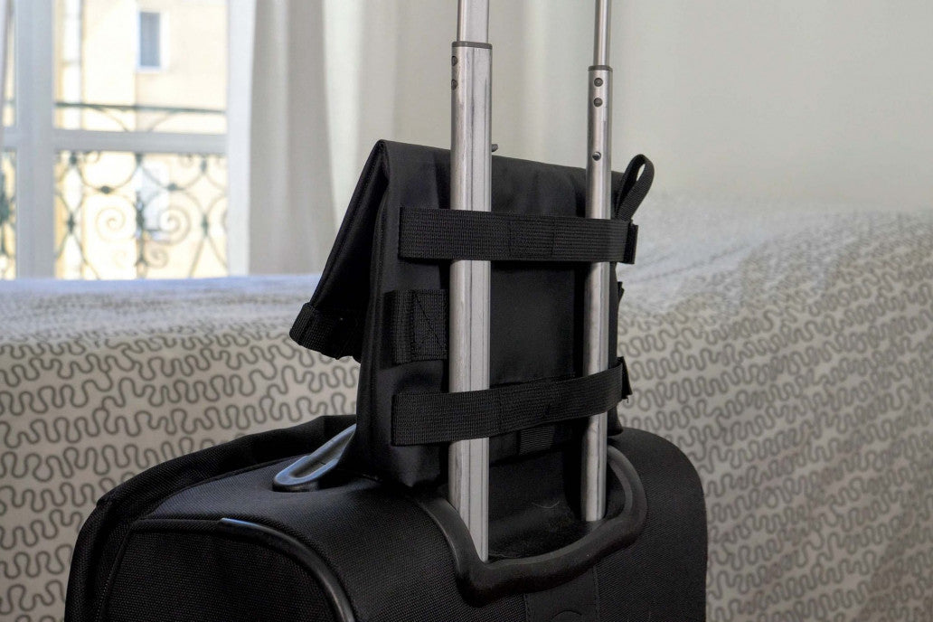 The Sling fits into any cabin carry-on or check-in luggage. Inside other bags the sling gives extra protection to your delicate gear from any possible “indoors” accidents, like perfumes or creams leackage . While outside is a perfect tool to hold your passport, cream and electronics. Hold up your cabin luggage and go!