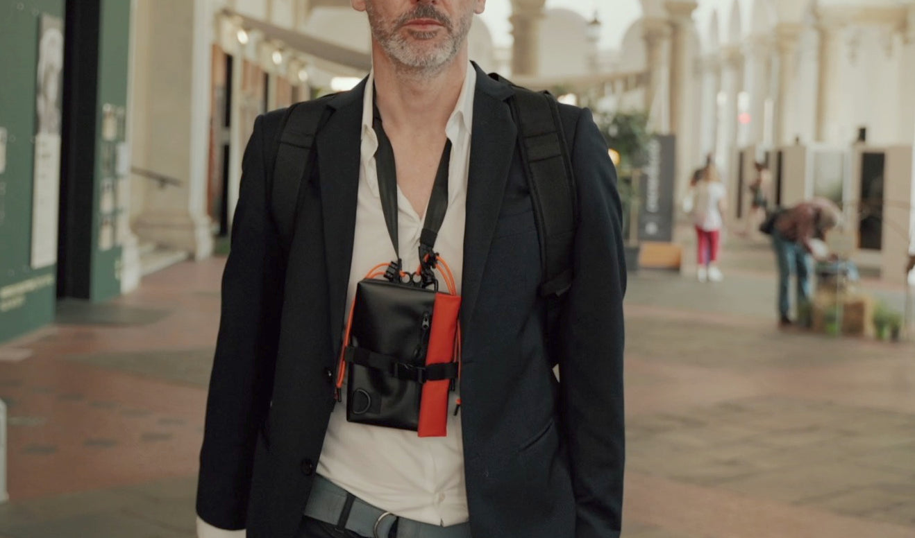 Uncover switches from a bike handlebar bag to a sling; from a belt pouch to a neck organiser thanks to the innovative and adjustable shoulder strap and metal customized hooks.